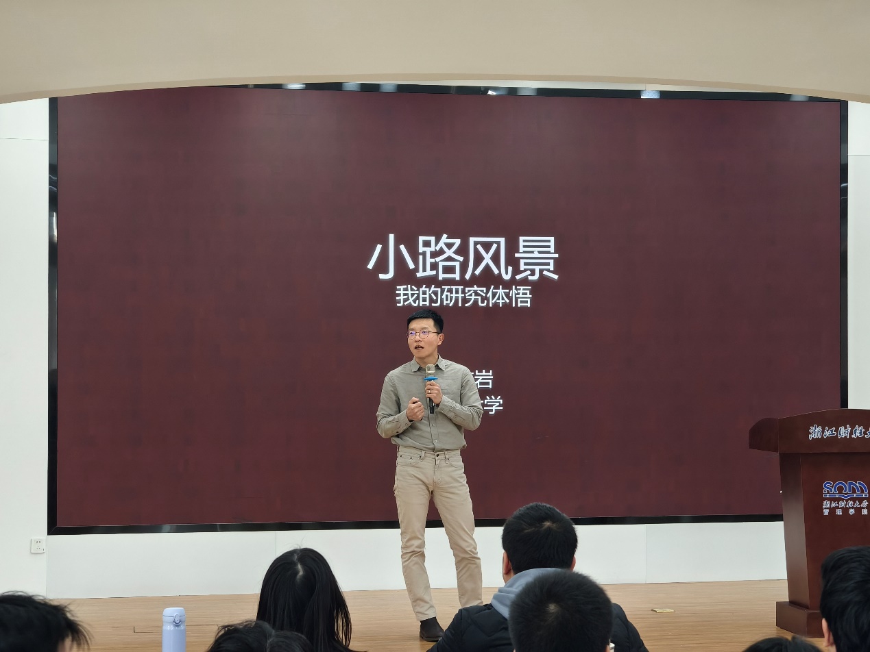 为营造浓厚的学术氛围,拓展研究生的科研视野,管理学院第一届研究生学术月活动于11月20日正式启动。当日下午,浙江大学管理学院吴志岩教授应邀作《小路风景:我的研究体悟》专题报告,与在场研究生分享了学术路上的一个个小故事以及由一点一滴汇聚而成的系统思考与感悟,为管理学院全体研究生带来了一场兼具思想深度与人文温度的学术盛宴。