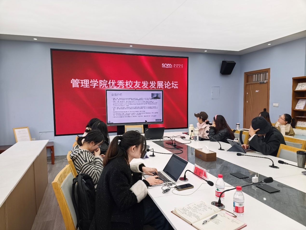 12月18日,浙江财经大学管理学院优秀研究生校友发展论坛顺利举行。作为管理学院2025年研究生学术月的重要活动,本次论坛精心搭建校友与在校生的互动桥梁,助力在读研究生科学规划未来发展路径。