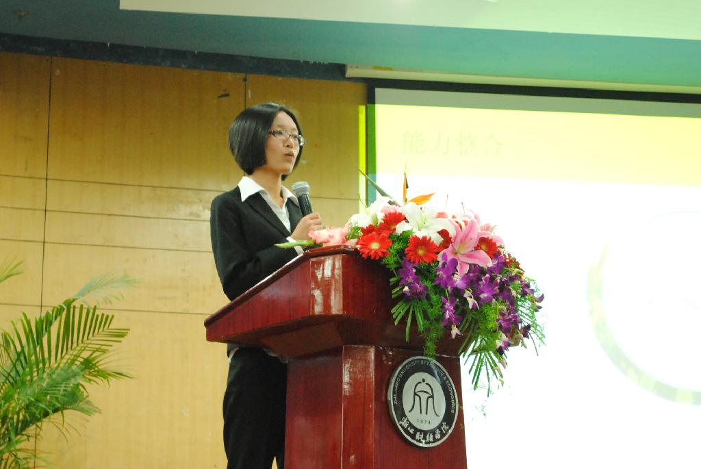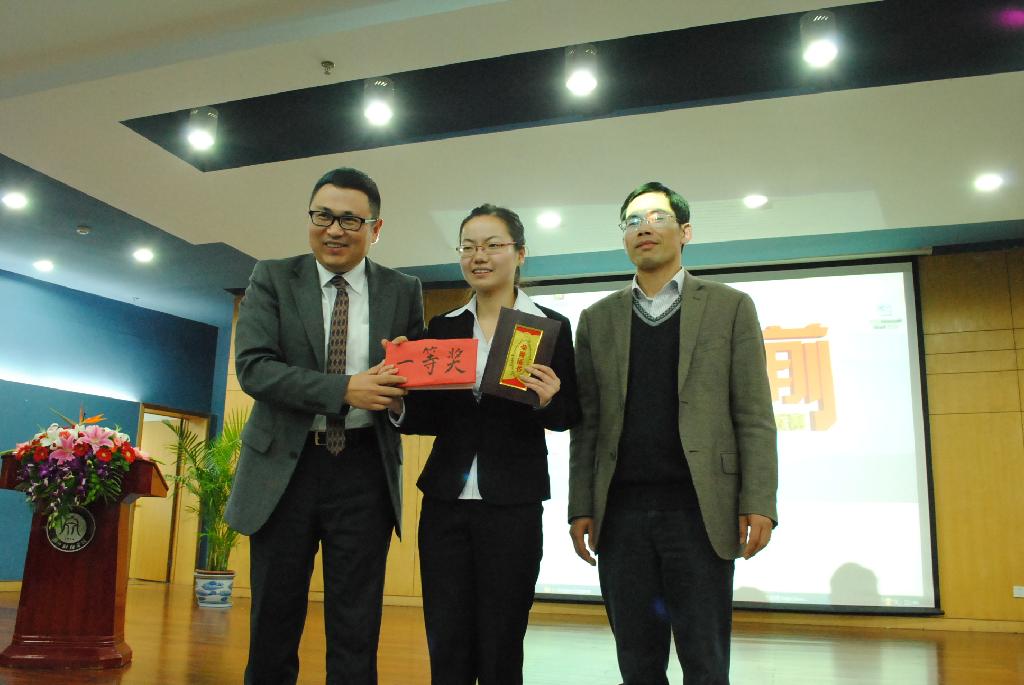 通过激烈的比赛,浙江财经学院09会计专业的杨海琳同学摘取第一名,浙江理工大学08市场营销的刘俊强和浙江工商大学08统计学的郑旻卉,浙江工商大学09英语的褚淑敏和浙江工商大学09人力资源管理的阳阳分别荣获二三等奖。