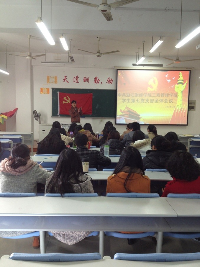 12月4日下午,学生第七党支部在学院楼109教室召开了全体会议。会议由支部副书记潘进鸿主持,支部全体党员、预备党员参加了本次会议。会议主要听取与讨论了本次6名发展对象(入党积极分子)的入党志愿,并作出表决。