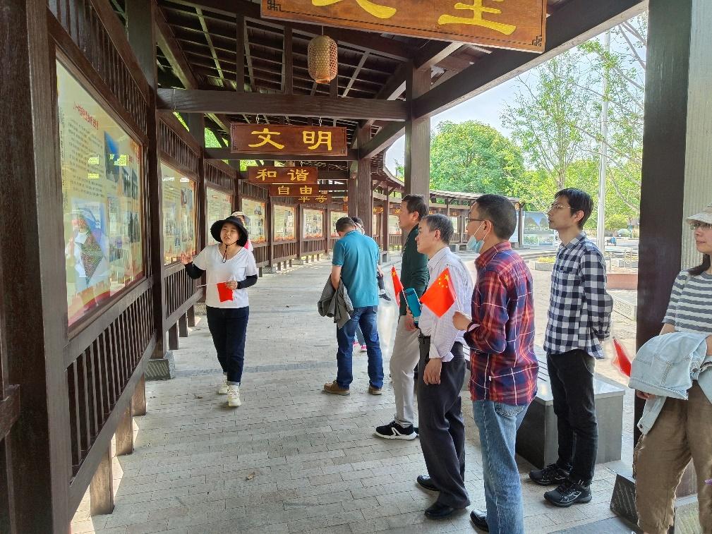 随后,交流团来到了杭州市首批共富村之一——八一村。八一村历史悠久,人杰地灵。1954年村里成立首个初级农业生产合作社时,为纪念“八一”建军节,继承和发扬革命传统,太平区人民武装部驻村工作的同志提议,以“八一”作为社名,并沿用至今。在村文化长廊和文化礼堂,八一村董梦娜副书记和杨芳委员介绍了丰厚的红色革命历史和开展的党建活动。