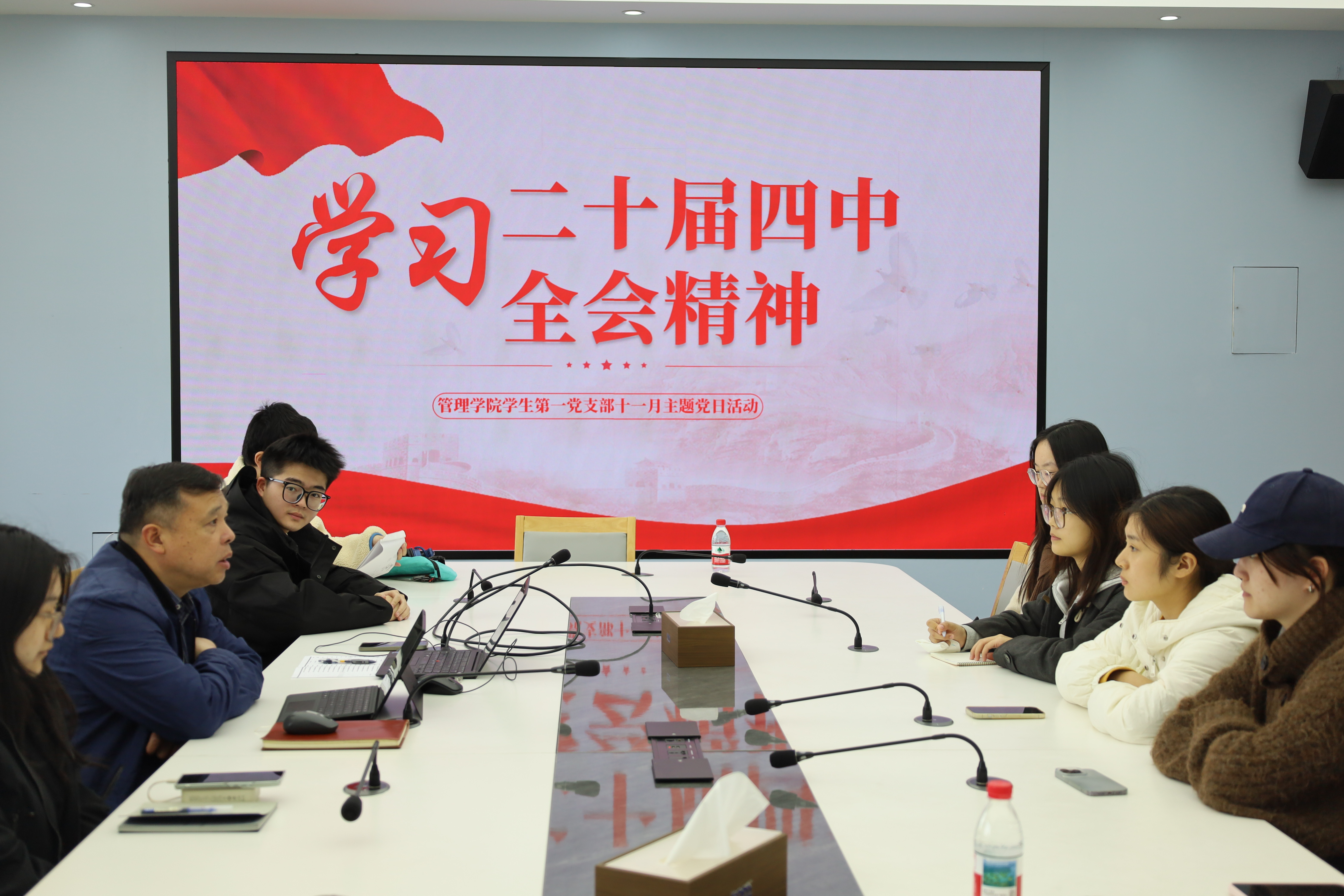 为深入学习贯彻党的二十届四中全会精神,引导青年学生党员准确把握国家发展大局,11月27日中午,管理学院学生第一党支部在学院楼416会议室召开专题学习会。