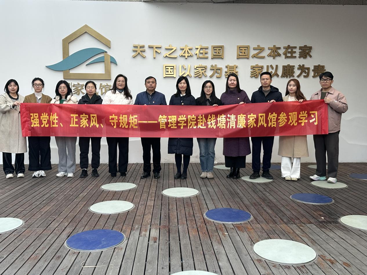 为深入学习贯彻党的二十届四中全会精神,进一步加强党风廉政建设,弘扬中华优秀传统文化,12月16日,学院党委、纪委联合组织各党支部书记及纪检干部,赴钱塘清廉家风馆开展了一场别开生面的主题教育活动。