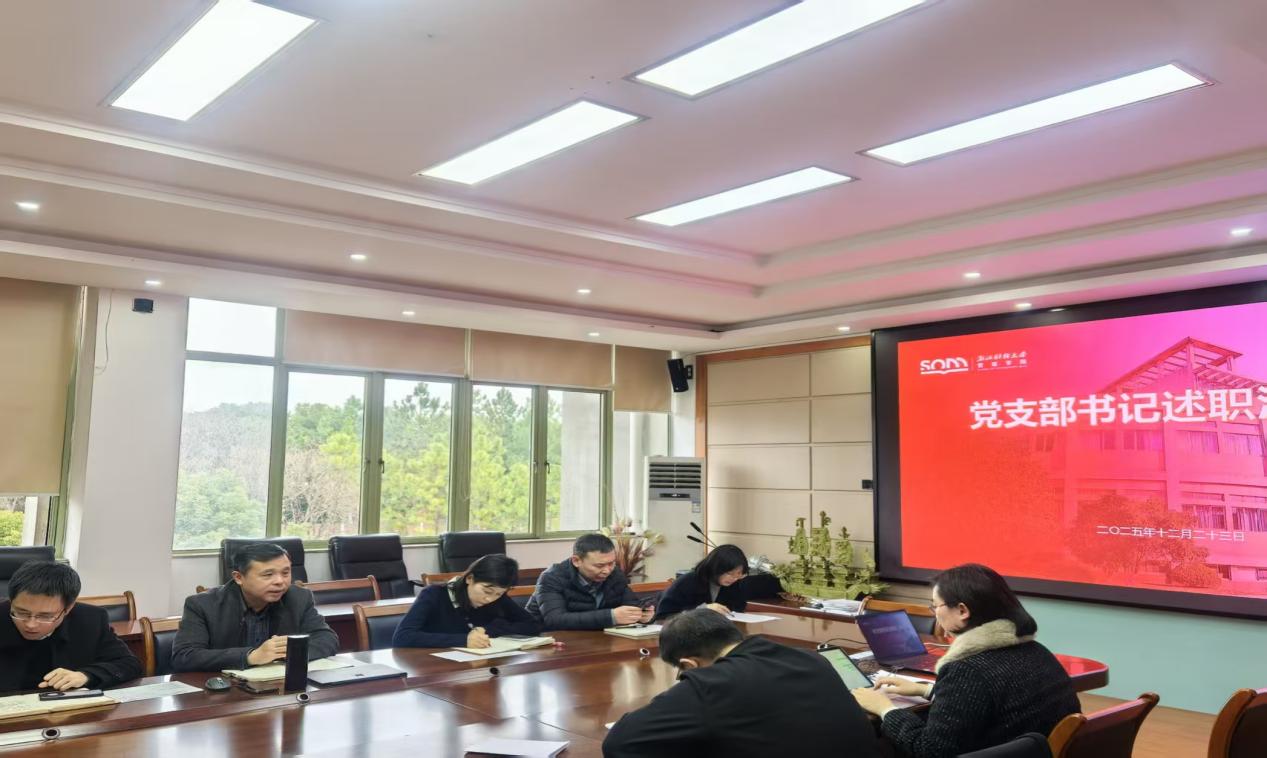 为深入学习贯彻习近平新时代中国特色社会主义思想,全面落实新时代党的建设总要求,切实检验基层党支部工作成效,12月23日下午,学院党委召开2025年度党支部书记述职评议会。学院党委班子成员、各党支部书记参加会议。会议以“党建统领聚合力,实干担当促发展”为主题,通过“现场述职+点评评议”的形式,全面复盘年度党建工作,精准谋划下一步发展方向,推动学院党建与事业发展深度融合、同频共振。