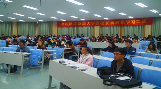 党员发展对象以外,还有来自财政税务学院、经济学院、法学院、马克思主义学院、中国金融研究生、后勤服务中心等单位共计126名。徐晓东、黄卫华和华正学3位老师作为特邀主讲老师,分别从学习党的十九大精神,端正入党动机与树立远大理想等方面进行了讲授与解读,也与全体学员分享了他们对十九大、对党的深刻理解,让全体学员进一步了解了党的政策,加深了对党的历史、理论的理解,从而更好的贯彻学习党的精神。
