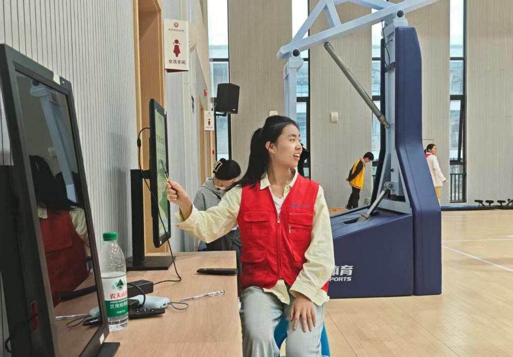 10月20、21日,一群身着红色志愿服的志愿者们在启成实验学校参与了一场为期两天的学生体检活动,用专业与爱心为孩子们的健康成长保驾护航。在视力检测区,孩子们在专人引导下有序排队,流程清晰高效。检测中,志愿者们化身 “护眼阿老师”,一边用温和的语气指导学生辨认视标,一边细致记录每一位学生的左眼、右眼视力数据;遇到视力偏弱或紧张的孩子,还会蹲下身轻声安抚,用 “多看绿树少看屏幕” 的小提醒传递护眼知识。
