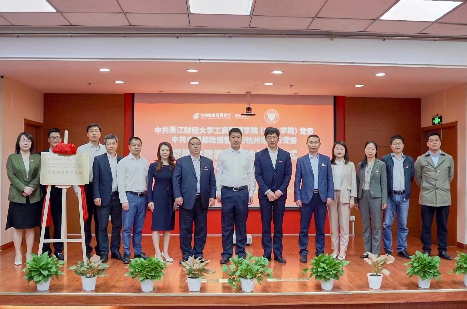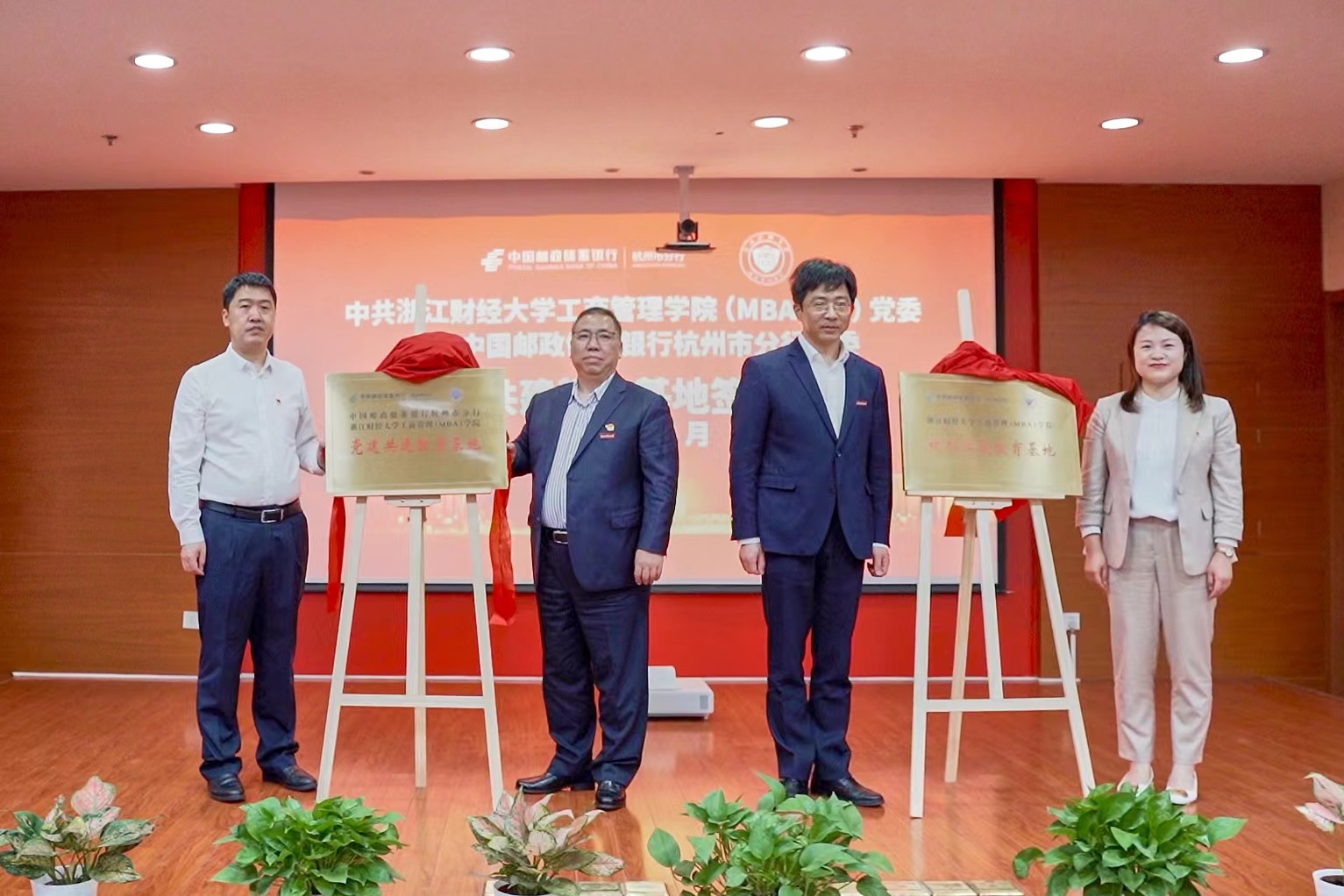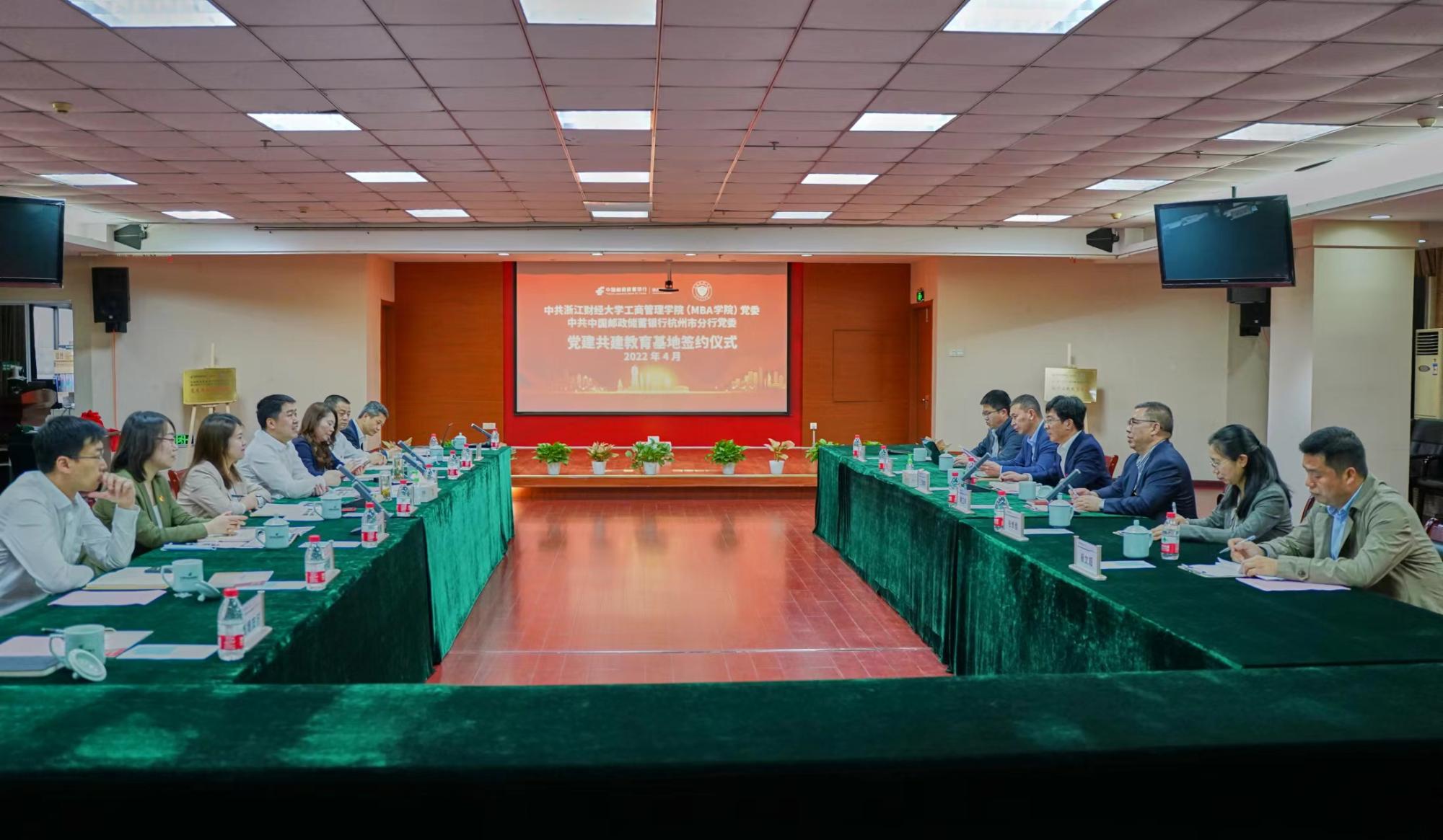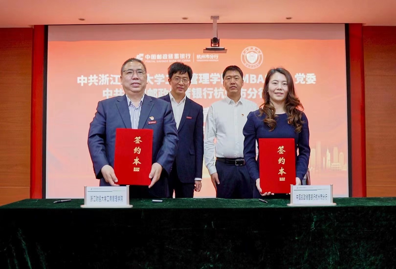 4月28日下午,工商球神直播 党委与邮储银行杭州市分行党委举行党建共建教育基地签约仪式。工商球神直播 (MBA学院)院长王建明、党委书记黄卫华、副院长张雷,中国邮政储蓄银行杭州市分行党委书记、行长姚恒,党委委员、副行长虞晗华,党委委员、副行长方锐帆等出席签约仪式。