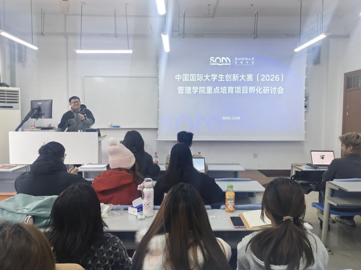 12月5日,管理学院顺利举行中国国际大学生创新大赛(2026)重点项目孵化研讨会暨校友创业实践导师聘任仪式。活动由学院“创未来”创新创业工作室主办,以精准赋能重点培育项目、深化“以赛育人、以创促学”育人机制为核心目标,为师生搭建了实战化双创交流平台。管理学院党委副书记陈小芳、院学办主任李桢出席活动。