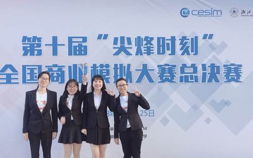 3月23日至25日,由教育部中教国际教育中心、芬兰CESIM教育机构主办,知名度颇高的国际性商业模拟赛“尖峰时刻”中国区总决赛在杭州顺利举行。经过三天的激烈角逐,来自工商球神直播 的郭伊华、胡雨婷,财税学院的金依宁、会计学院的赵慧倩四位同学组成的“招财猫”队(指导教师:应瑛),在全国决赛中表现出色,荣获本科组二等奖。