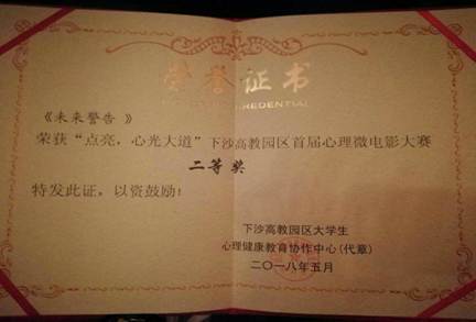 “获得本次‘点亮,心光大道’下沙高教园区心理微电影大赛二等奖的有,来自浙江财经大学工商球神直播