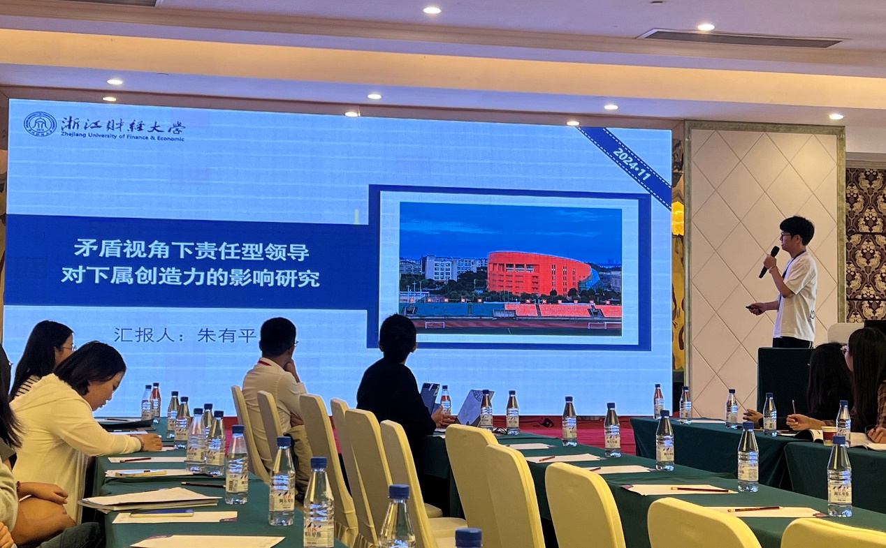 2023级研究生朱有平与导师董进才教授、王浩丁老师合作的论文《矛盾视角下责任型领导对下属创造力的影响研究》受邀在年会上进行了论文汇报。