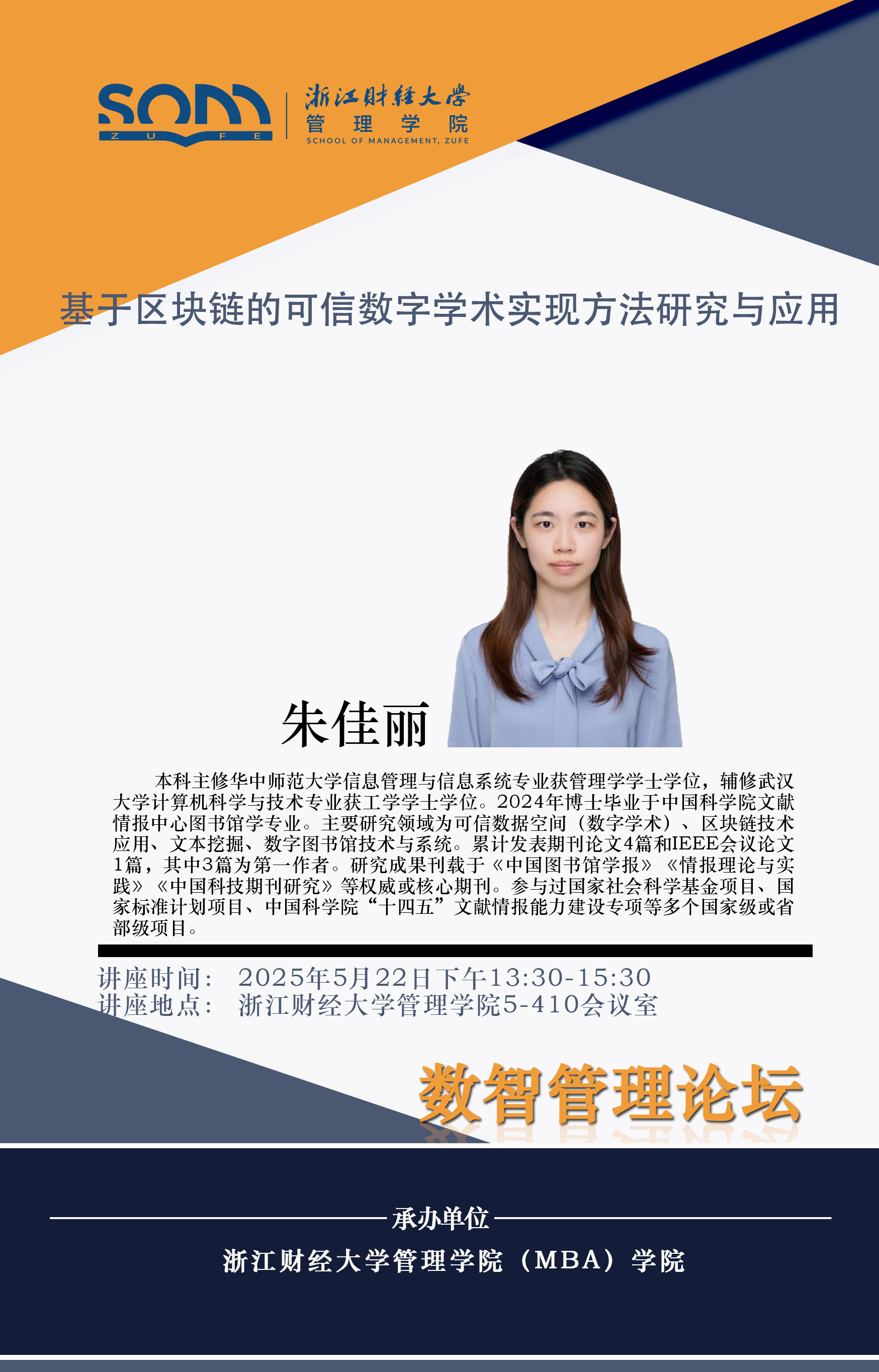 球神直播 新财经战略系列学术活动2025年第40期【学术报告】朱佳丽:基于区块链的可信数字学术实现方法研究与应用