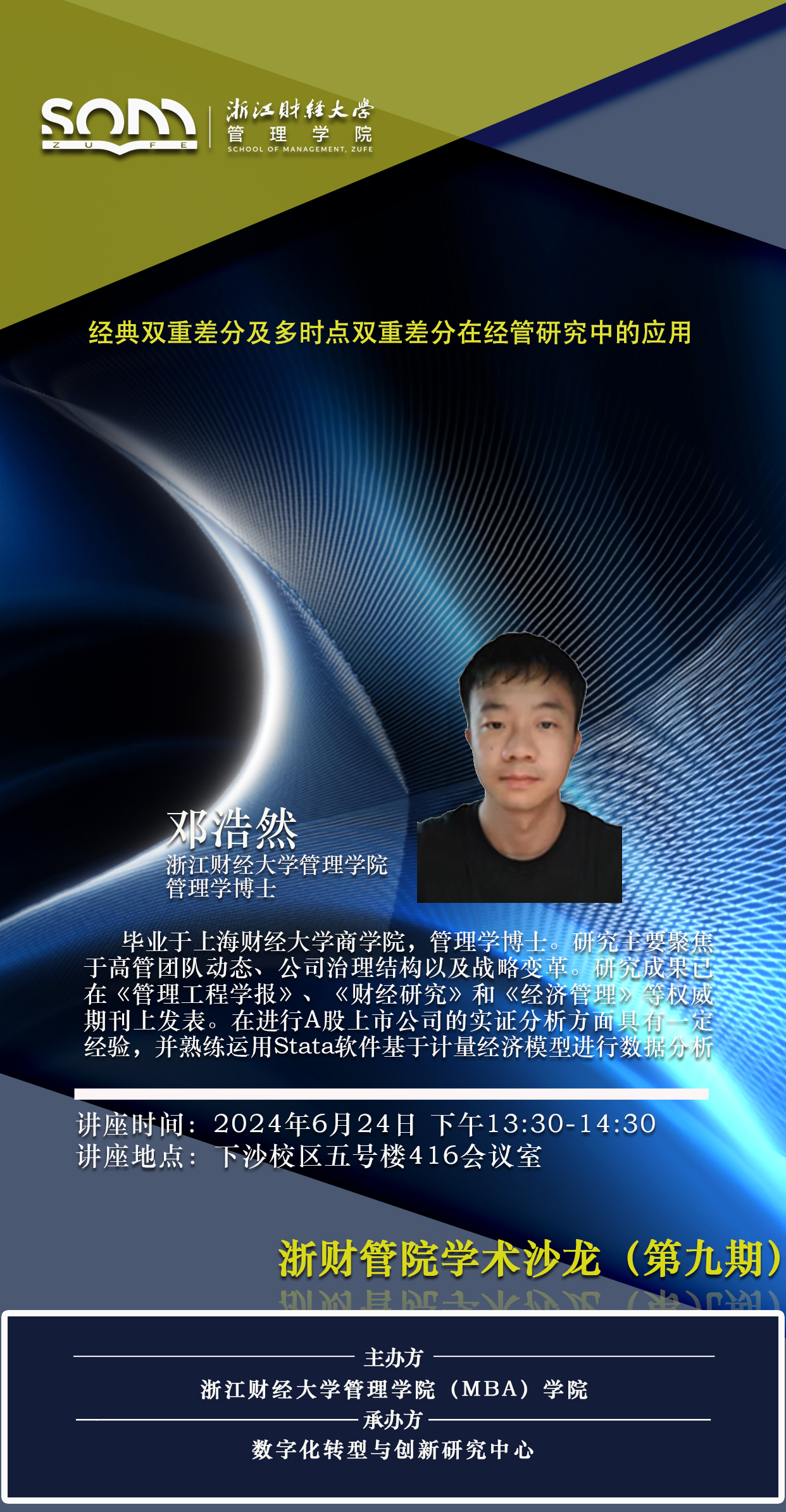 【浙财管院学术沙龙(第九期)预告】邓浩然:经典双重差分及多时点双重差分在经管研究中的应用