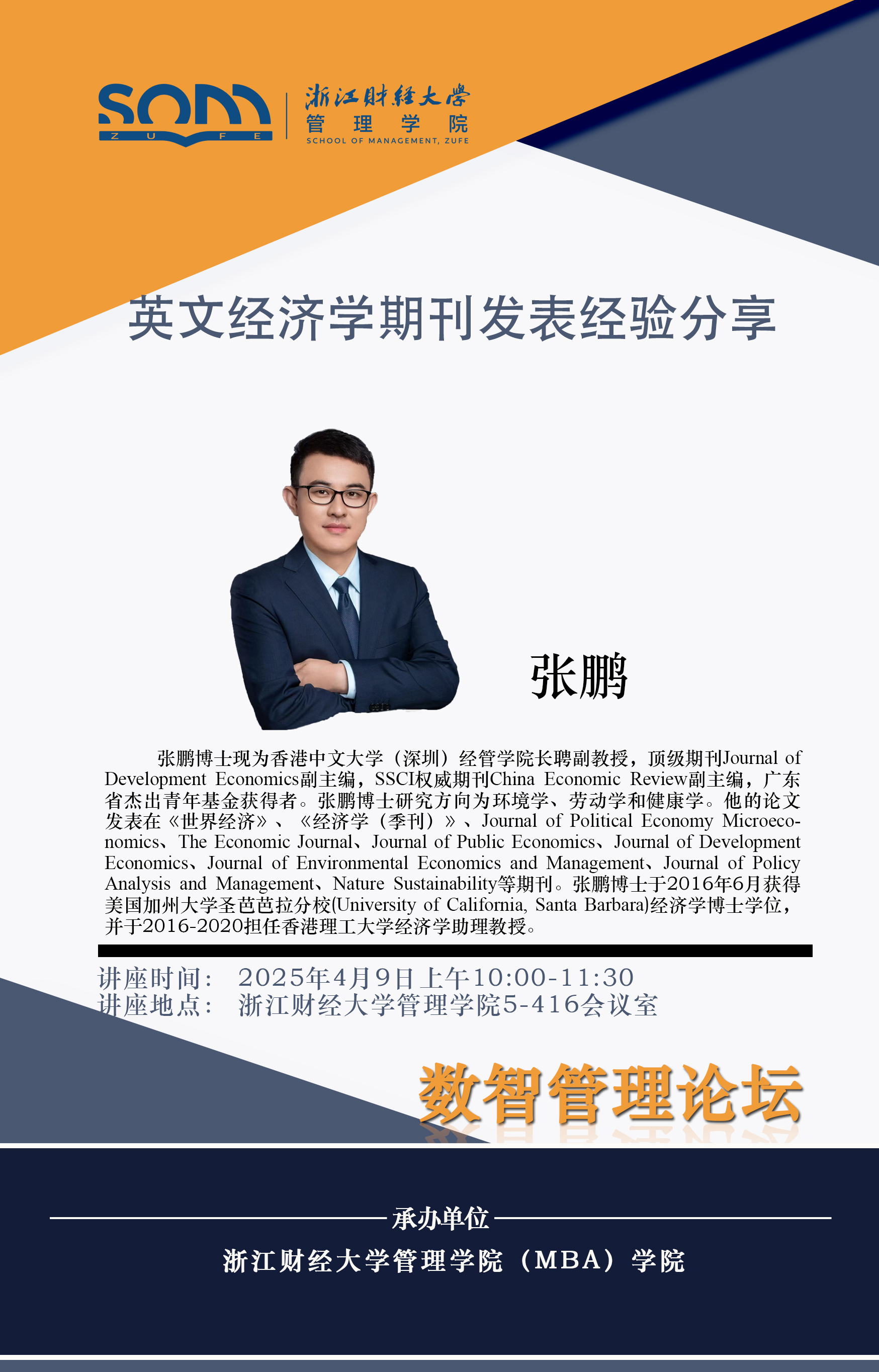 球神直播 新财经战略系列学术活动2025年第11期【学术报告】张鹏:英文经济学期刊发表经验分享