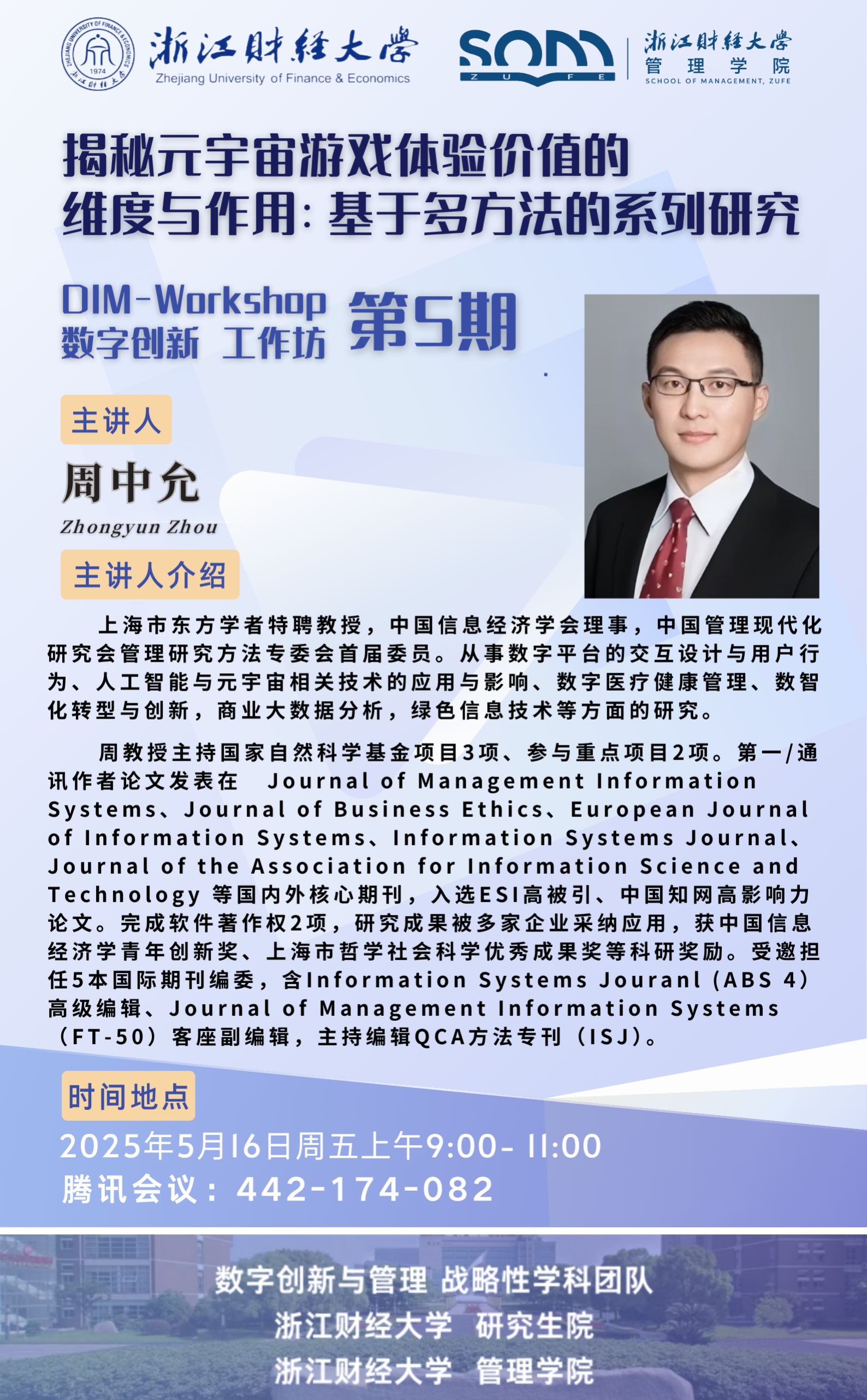 管理学院新财经战略系列学术活动2025年第34期【数字创新工作坊】周中允:揭秘元宇宙游戏体验价值的维度与作用:基于多方法的系列研究