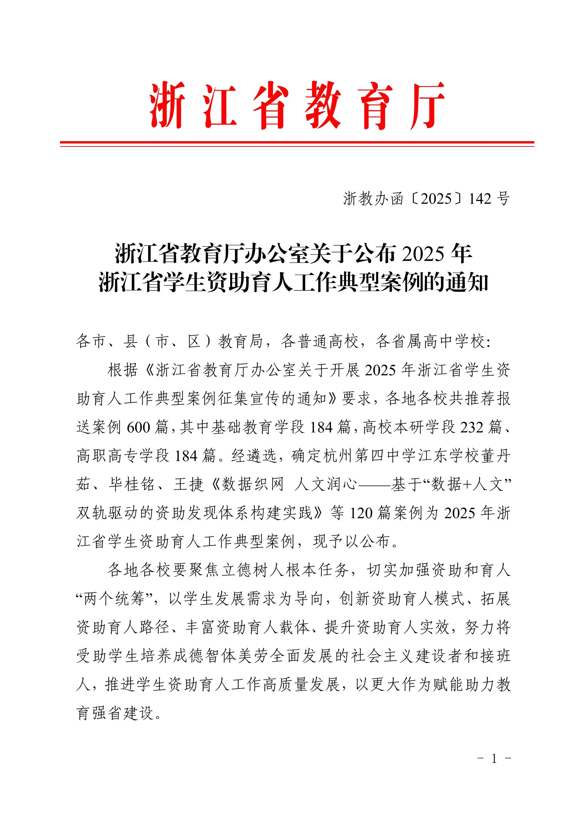 近日,浙江省教育厅办公室正式公布2025年浙江省学生资助育人工作典型案例名单。经全省范围内的严格遴选与专家评审,我校管理学院辅导员马硕、钱婕、梁磊撰写的工作案例《助学结对破“挂科”,成长双轮拒“独行”——朋辈补习班“双轮驱动”逆转学困生成长轨迹》,从全省近600篇申报案例中脱颖而出,成功入选该批次省级典型案例。